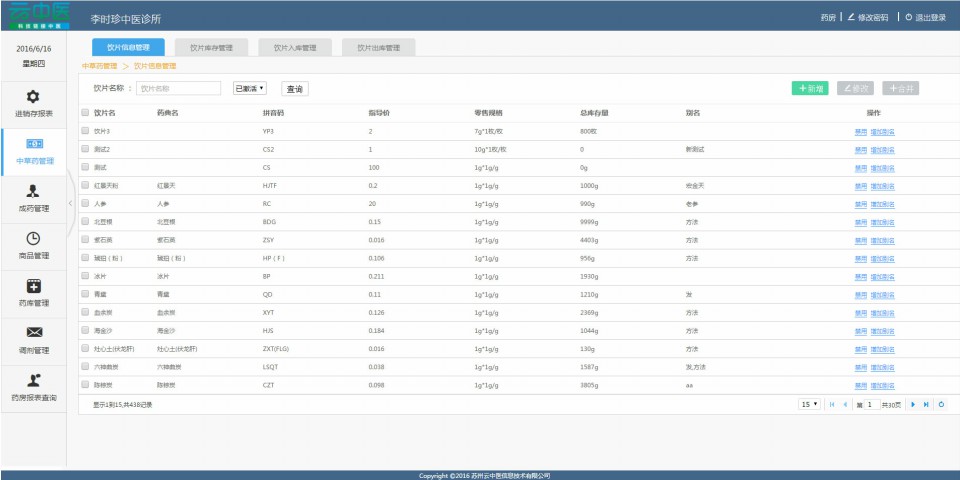 药品进销存、调剂、代加工等电子管理